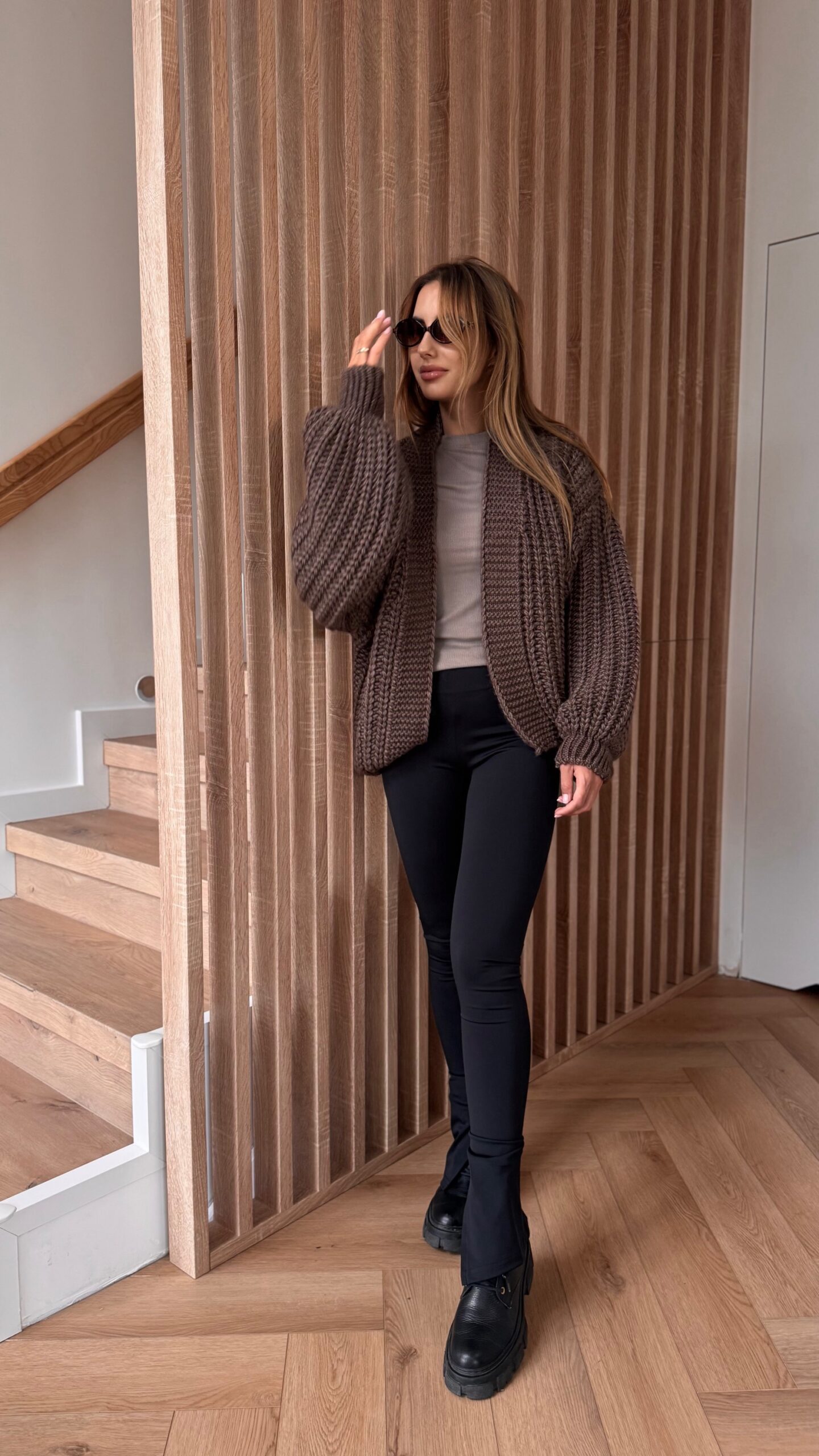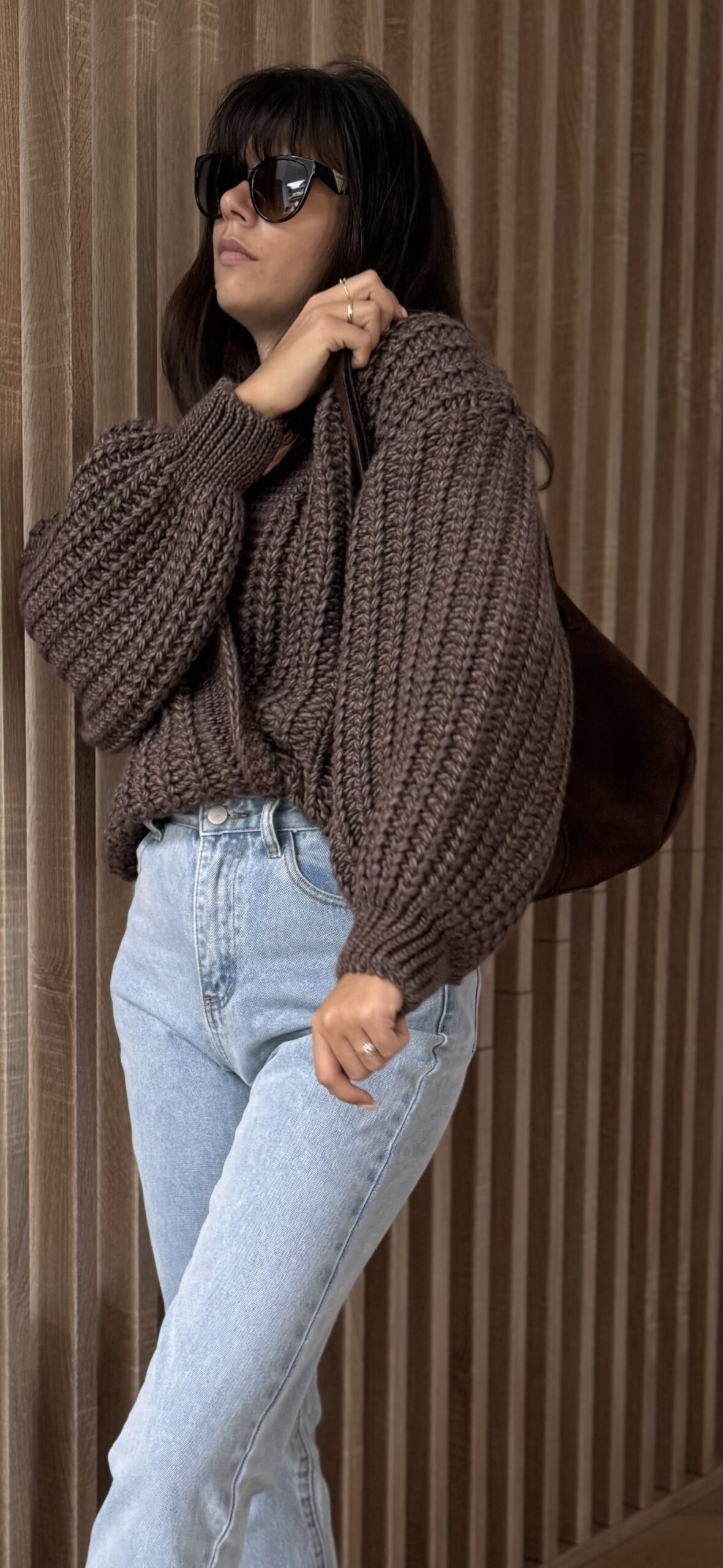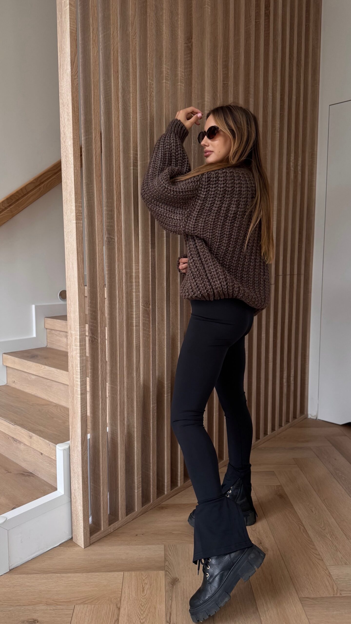 Miękki, kobiecy i ponadczasowy. Uszyty z wysokogatunkowej włoskiej przędzy, łączy w sobie komfort i elegancję. Czekoladowy odcień dodaje stylu i świetnie sprawdzi się zarówno w codziennych, jak i bardziej eleganckich stylizacjach. Uniwersalny fason otuli sylwetkę i stanie się Twoim ulubionym elementem garderoby na chłodniejsze dni.