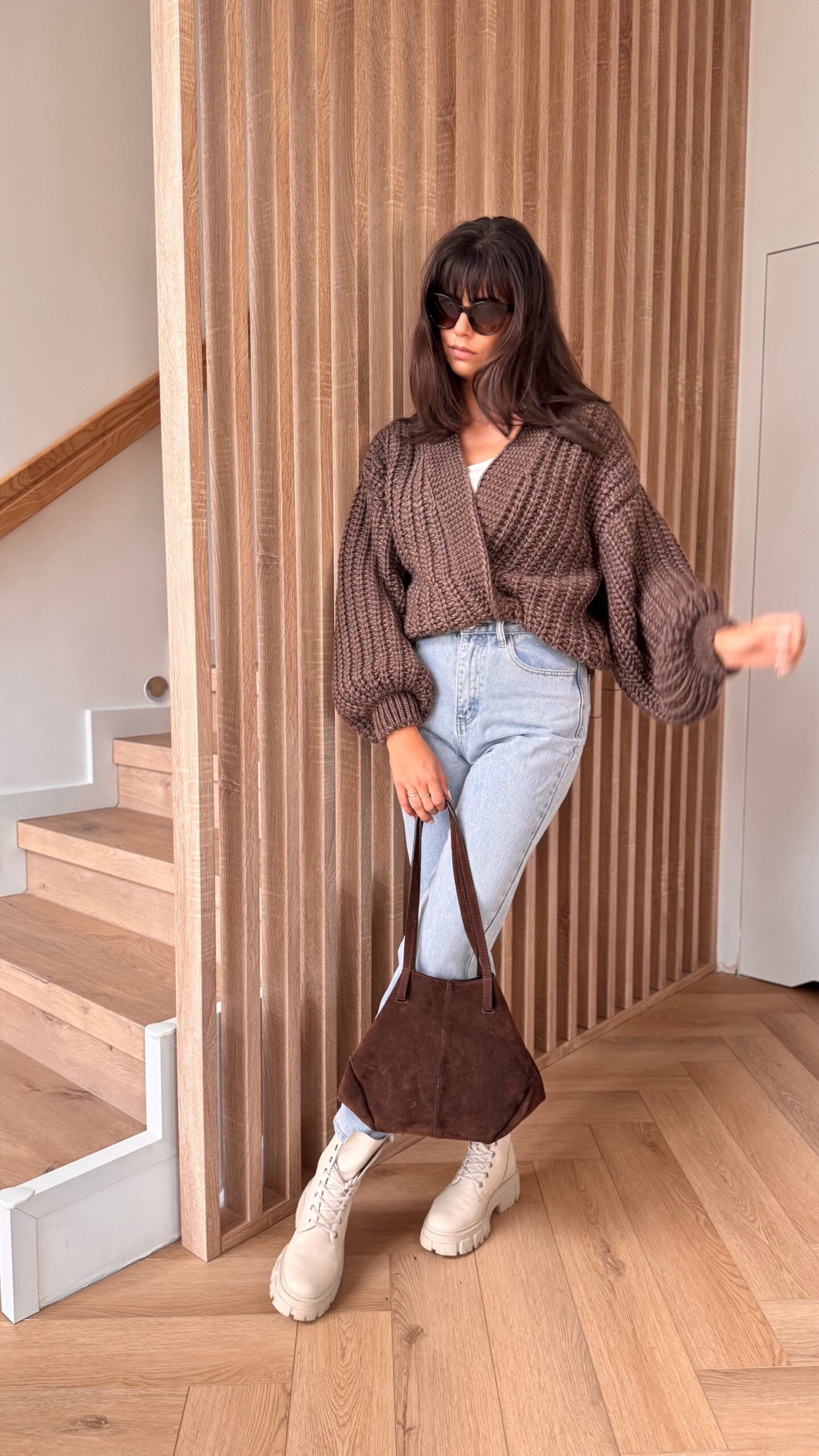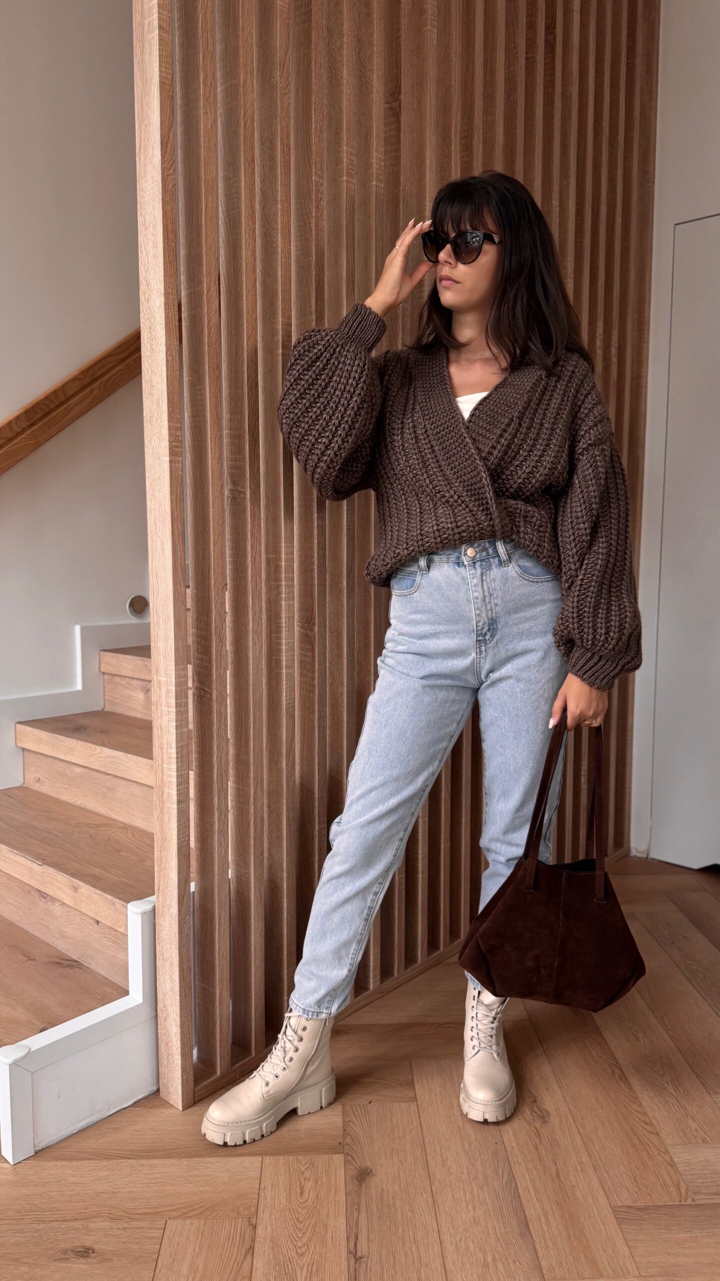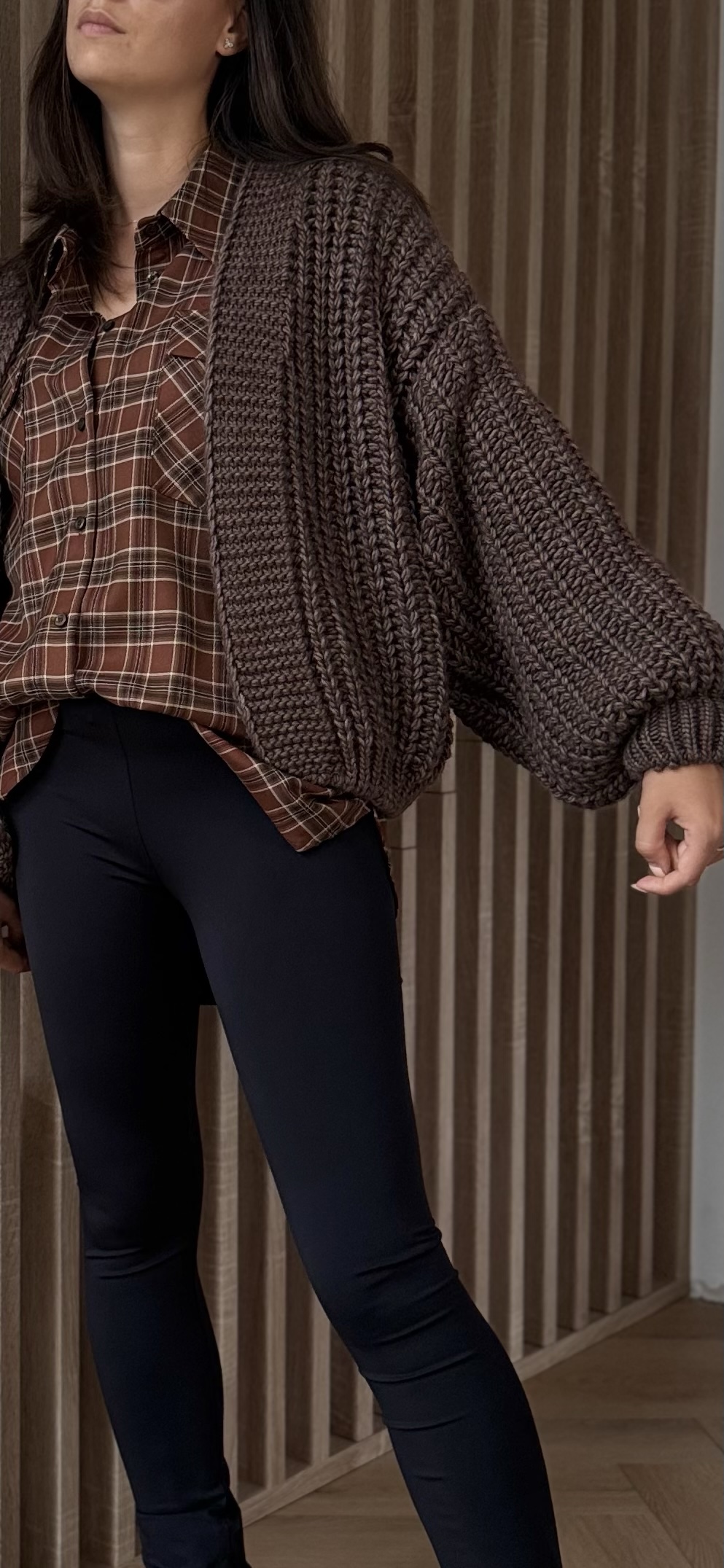 Miękki, kobiecy i ponadczasowy. Uszyty z wysokogatunkowej włoskiej przędzy, łączy w sobie komfort i elegancję. Czekoladowy odcień dodaje stylu i świetnie sprawdzi się zarówno w codziennych, jak i bardziej eleganckich stylizacjach. Uniwersalny fason otuli sylwetkę i stanie się Twoim ulubionym elementem garderoby na chłodniejsze dni.